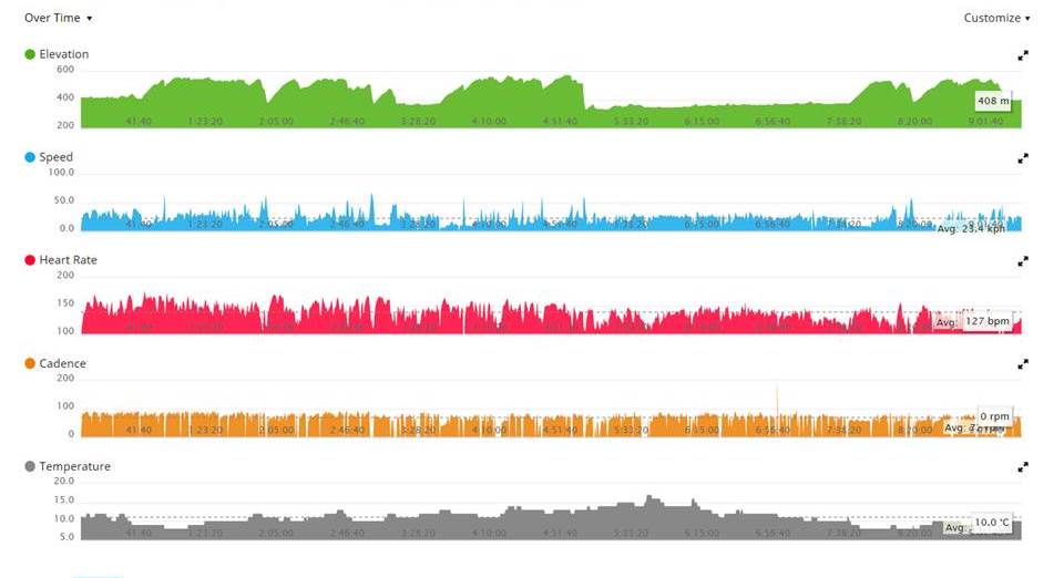 I really enjoy the ARA Nordbayern Brevet series that Karl and Heidi have put together, and would recommend it to anyone that wants to have a good but strenuous time riding their bike in Germany. Karl seems to put as much elevation change into his brevets as possible. That is OK, but for me, it seems to induce muscle cramps. This ride I was able to find some temporary solutions, but I am still going to work on the prevention side of this dilemma rather than the triage. It is the less painful method too. What is still unclear to me is the “Why” of my Heart Rate over the first 30-50 kilometers of the Brevet. It was unrealistically too high. My perceived effort for this same portion was also way too high. It could have been that I was over tired or that the cold temperature was affecting me more than I thought it should. Something was just not right during the first part of the ride. In fact because of the first section of the ride, it made it so that almost no part of the ride ended up being fun to me. That is frustrating. On a good note, I found out that magnesium works for me, and mustard can take the pains away almost immediately, and those are two good takeaways. To end here comes some data and pretty graphs. Thanks for reading.