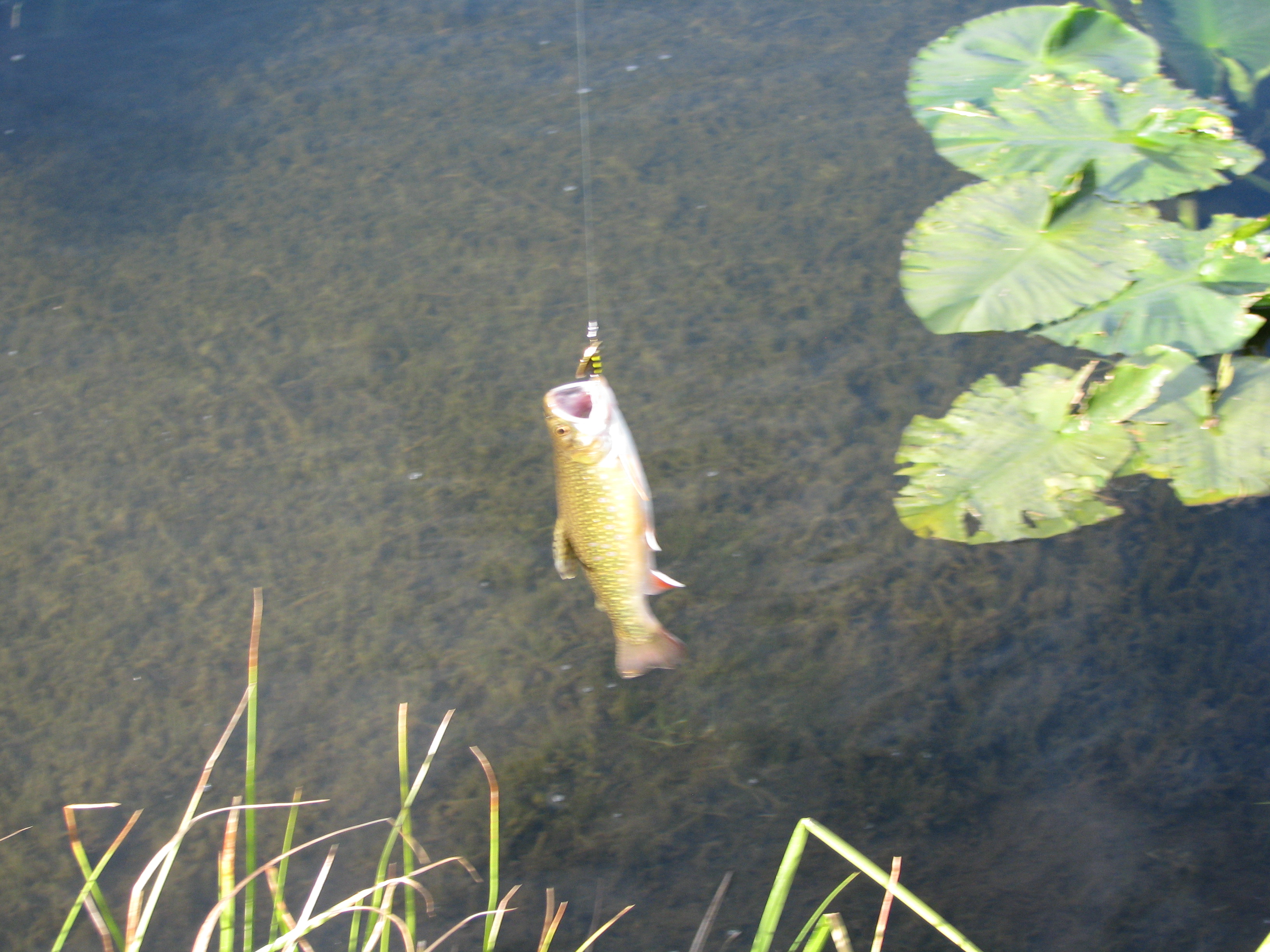 Pond fishing mid-hike at overhung floating bank ponds.